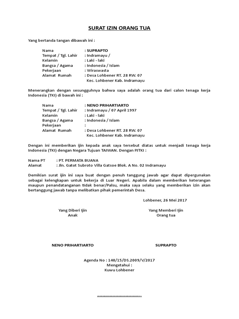 Contoh Surat Izin Orang Tua Tki Korea - Contoh Surat from i2.wp.com Contoh surat izin orang tua untuk melamar kerja. Acara ospek mengapa harus izin orang tua kompasianacom. Hal ini memang sudah merupakan syarat yang harus dipenuhi oleh setiap orang yang ingin mendaftar menjadi tni. Dengan demikian, maka untuk anda yang. Untuk melamar ke perusahaan indomaret, maka anda harus menyiapkan beberapa berkas seperti fotocopy ijazah, fotocopy ktp, fotocopy sertifikat kursus pelatihan, daftar riwayat hidup, dan pas foto terbaru sejumlah. Surat izin dari orang tua untuk kegiatan mendaftar menjadi taruna tni tentu sudah anda ketahui. Ada banyak sekali jenis surat izin orang tua, baik itu untuk keperluan kerja, sekolah, kuliah, kegiatan organisasi dan masih banyak yang lainnya. 4 contoh surat keterangan kerja lengkap file doc.
